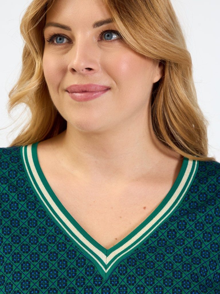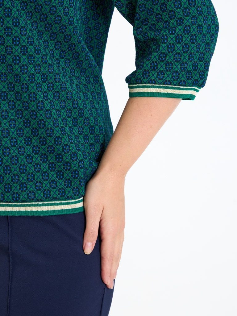 | Краткое описание | 74107 Блузка с коротким рукавом. Цвет:синий/зеленый. Состав : ПЭ 65%, вискоза 32%, спандекс 3%. Трикотажное полотно. Джемпер для женщин с V-образным вырезом. Нарядная блузка из трикотажного полотна в стиле "спорт-шик" представляет собой изысканное сочетание комфорта и стиля. Декоративные подвязы с люрексом, украшающие низ рукавов и горловину, придают кофточке особый шарм, V-образный вырез горловины элегантно подчеркивает линию груди. Тонкий джемпер с коротким до локтя рукавом станет незаменимой вещью для каждой девушки, добавляя шарма и стиля в образ независимо от времени года. |