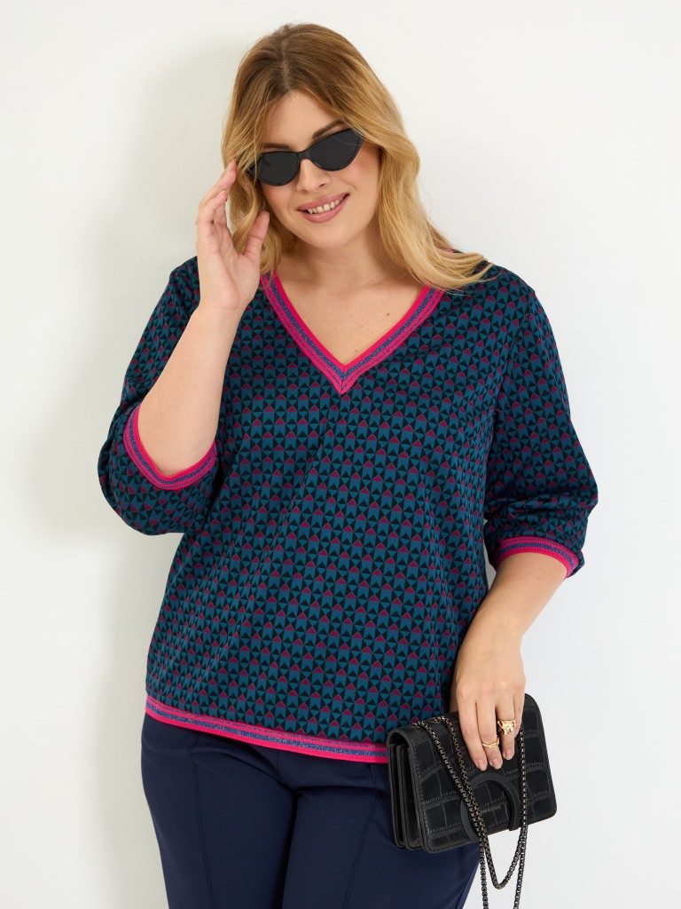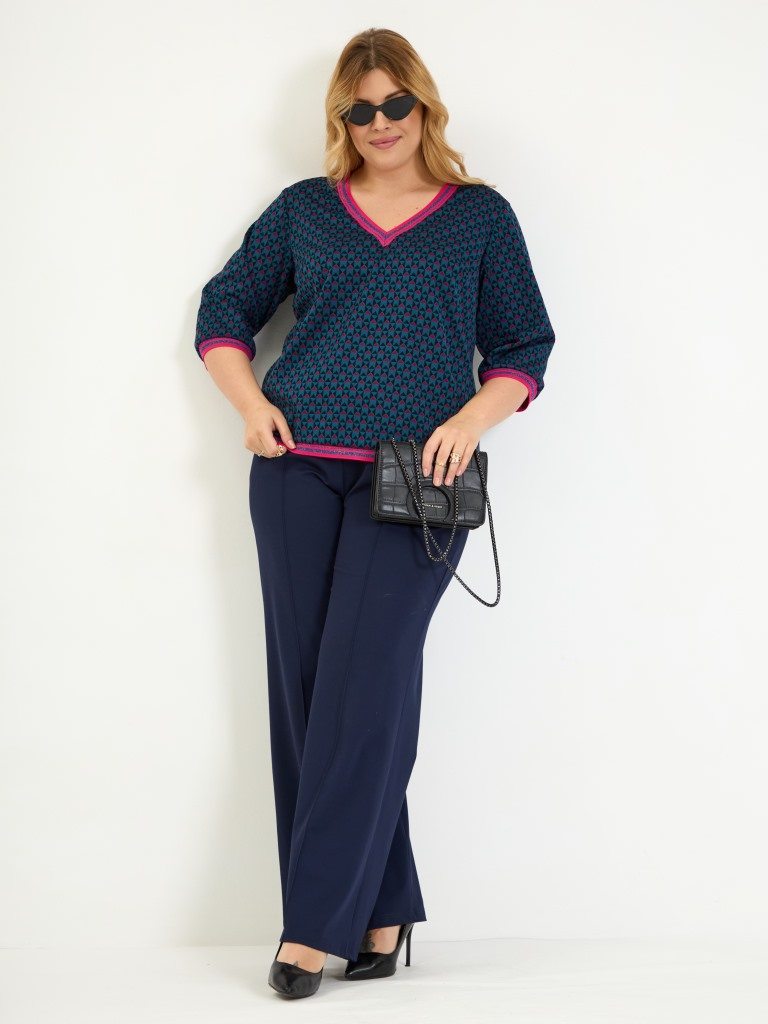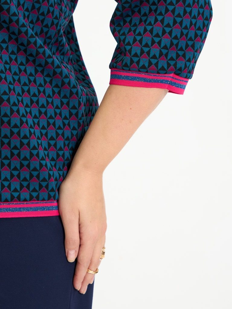 | Краткое описание | 74108 Блузка с коротким рукавом. Цвет:сине-зеленый/малиновый/, темный циан/маджента. Состав : ПЭ 65%, вискоза 32%, спандекс 3%. Трикотажное полотно. Джемпер для женщин с V-образным вырезом. Нарядная блузка из трикотажного полотна в стиле "спорт-шик" представляет собой изысканное сочетание комфорта и стиля. Декоративные подвязы с люрексом, украшающие низ рукавов и горловину, придают кофточке особый шарм, V-образный вырез горловины элегантно подчеркивает линию груди. Тонкий джемпер с коротким до локтя рукавом станет незаменимой вещью для каждой девушки, добавляя шарма и стиля в образ независимо от времени года. |